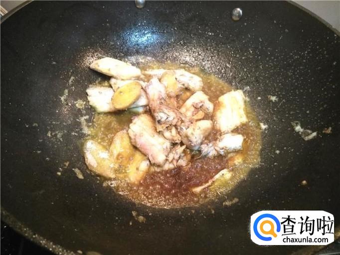两边都在油中煎过后,加5g酱油、3g醋、10g料酒。