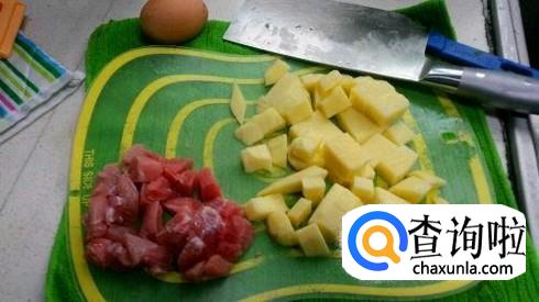 土豆去皮,清洗干净之后切成块,然后浸泡在水里。猪肉选择瘦一些的,清洗干净切成块或者条随便你自己。