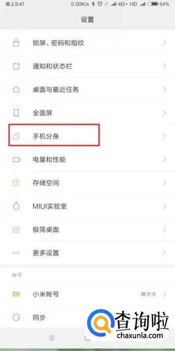 找到手机分身,点击进入