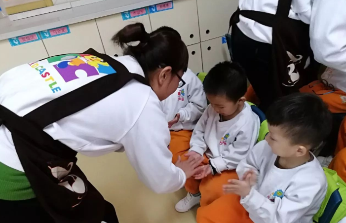 3、 对不会洗手的幼儿,由老师帮助洗。