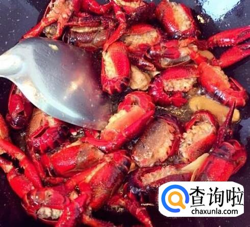 烧热,放入蒜蓉,煸炒香,放入小龙虾,翻炒。