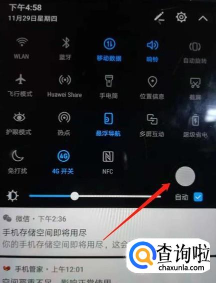将手机打开,从手机屏幕的最顶端,往下拉,调出导航栏。