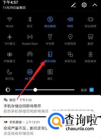 当你打开某个APP的时候,不想看了,想要关掉,那么点击“悬浮导航”就可以了。