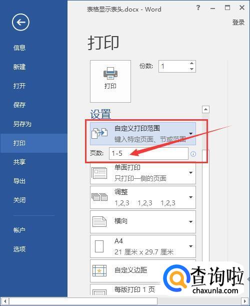 指定范围打印在长篇的文档中,我们可以只打印需要的指定页面的文档,比如第1页到第5页,选择【自定义打印范围】,在页数上输入【1-5】即可,若是要打印其他的任意页,那么输入【1,3,10】即可。