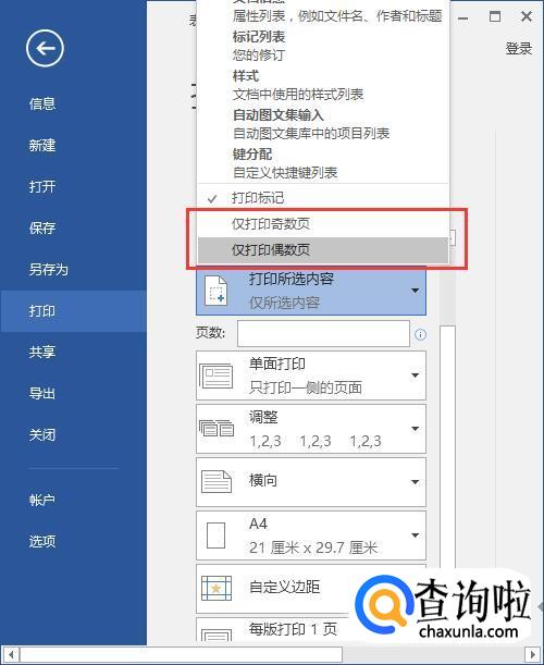 打印奇数页或偶数页如果要求指定打印奇数页或者是偶数页的话,直接在打印标记下勾选【仅打印奇数页】或【仅打印偶数页】。