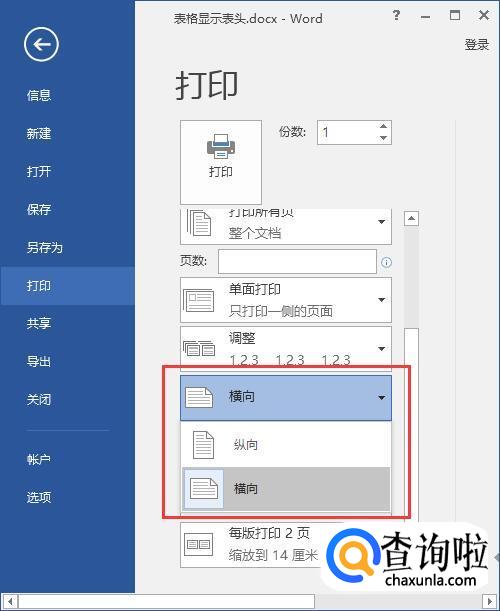 纵向横向打印在页面上的设置处可以直接设置纸张纵向或者是横向打印。
