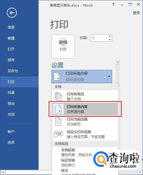 打印所选的内容选中文档中的指定内容,点击打印,进入选择【打印所选内容】,这样就可以将文档中指定的段落内容打印出来。