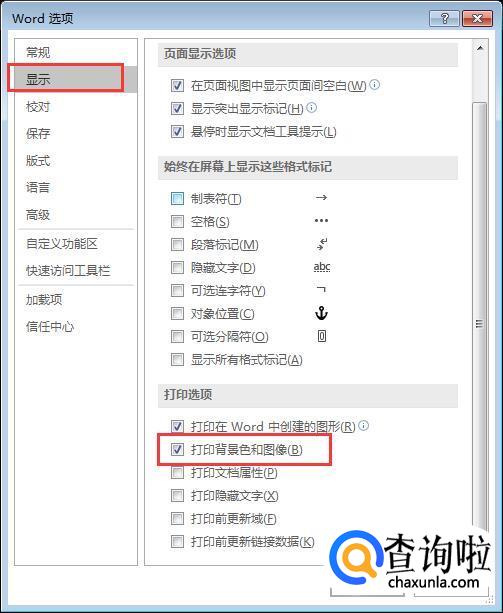 打印背景和图片在默认的打印情况下,一般打印不会有背景和图片,那么如果要打印背景和图片的话,我们需要自己去设置,进入【文件】-【选项】-【显示】,在底部可以看到【打印选项】,将【打印背景颜色和图片】打钩即可。