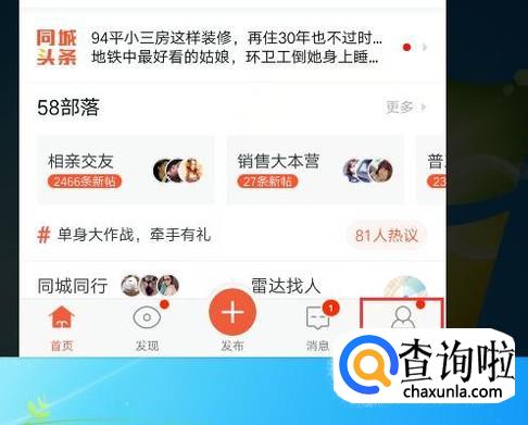 在手机上打开58同城APP会看到个人中心的功能,如图