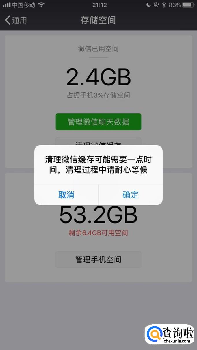 然后点击清除微信缓存,如下图所示。