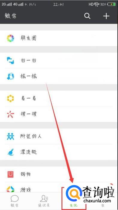 打开手机微信,点击“发现”,进入发现页面,如图所示。