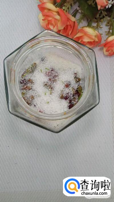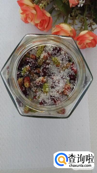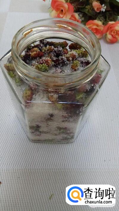 重复3和4的步骤,一层桑葚一层白砂糖,直至瓶子八分满为止。