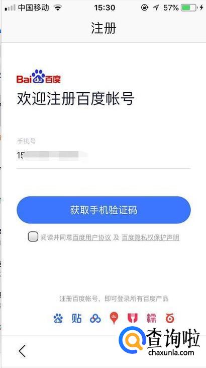 首先我们打开百度app进入到注册的页面,把手机号填上然后发送验证信息。
