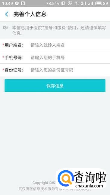 授权完成之后进入完善个人信息界面,按照要求输入个人信息进行保存使用,就能够完成预约挂号了。