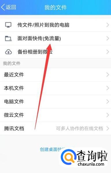 进入之后,点击“面对面快传”,进入下一页面,如图所示。