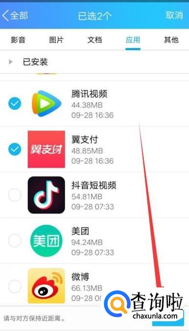进入之后,在应用页面位置勾选自己想要分享的应用,点击“确定”。