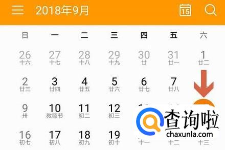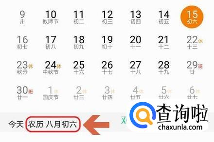 点击打开以后,华为日历自动标注当天的日期以及对应的农历;