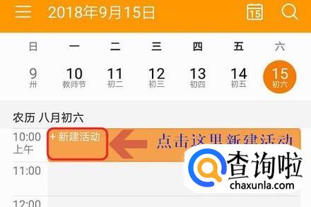 此外还有一个新建活动的方法,那就是将日历切换到“日”显示形式下,然后对弈点击其中某个时间段,这样即可快速的进行对应时间段的活动安排了;