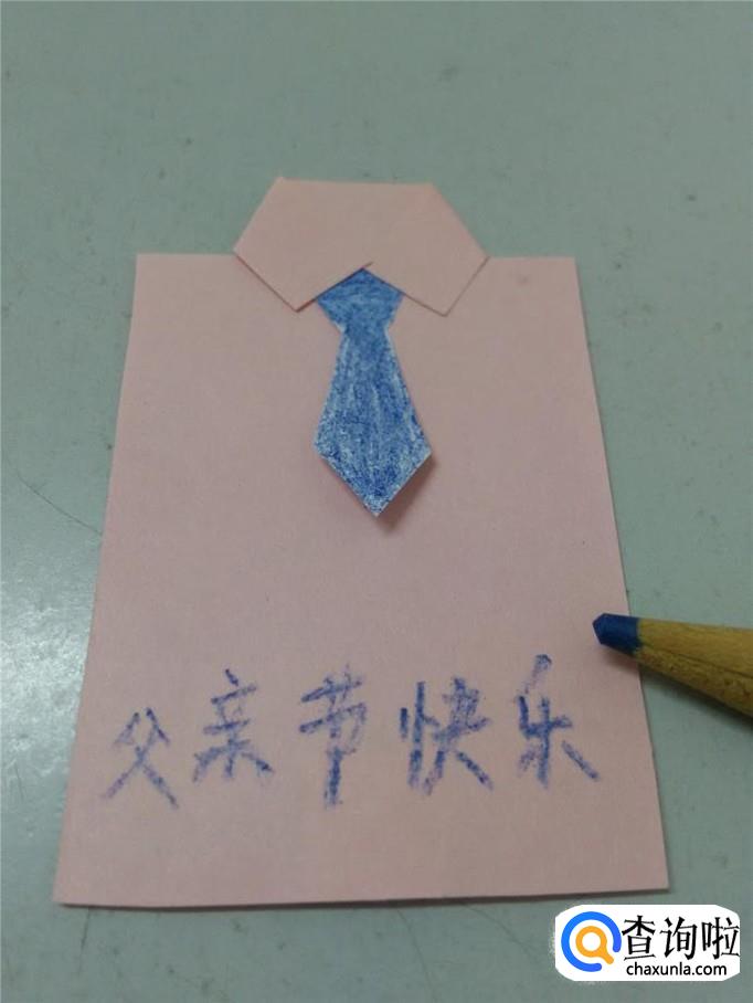 再用彩笔在领带下方写上父亲节快乐,一张父亲节贺卡就做好了。