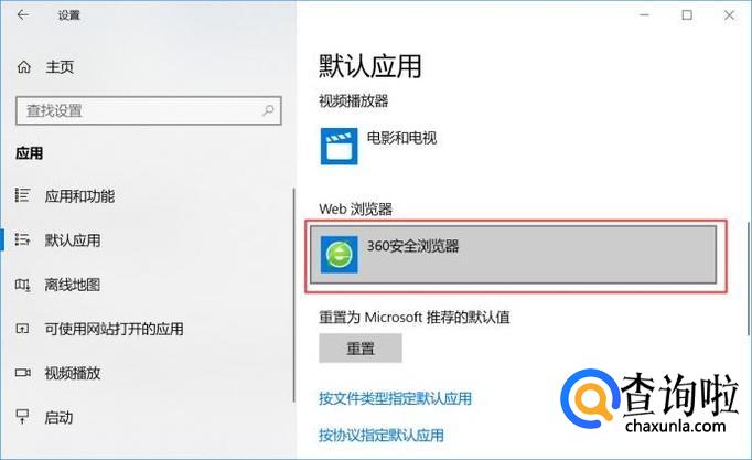 弹出的界面,我们点击默认应用;