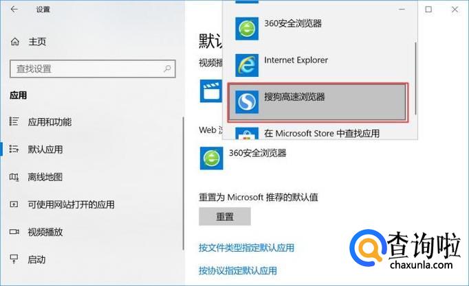 弹出的界面,我们可以选择其他的浏览器,此处我们选择搜狗高速浏览器,这样我们就更改好了。