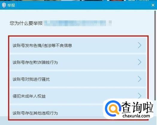 接着选择你要举报的原因,如下图所示。