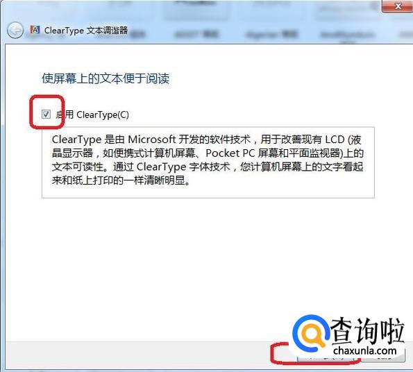 进入文本调谐器,勾选“启用cleartype”,然后一直点击下一步,根据提示做选择。
