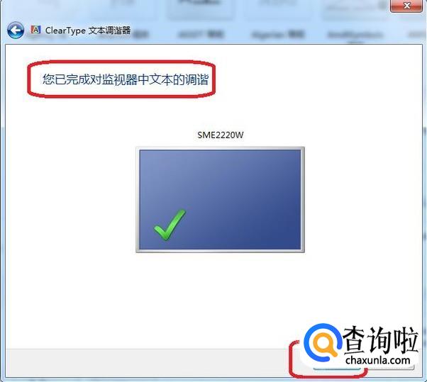 直到出现提示,已完成对监视器中文本的调谐,点击完成即可。