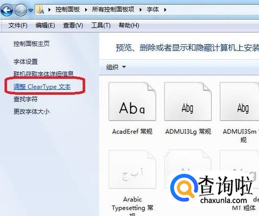 在左侧栏里找到“调整cleartype 文本”,点击进入设置。