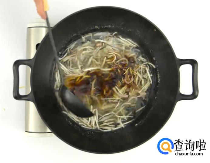倒入老抽,搅匀。