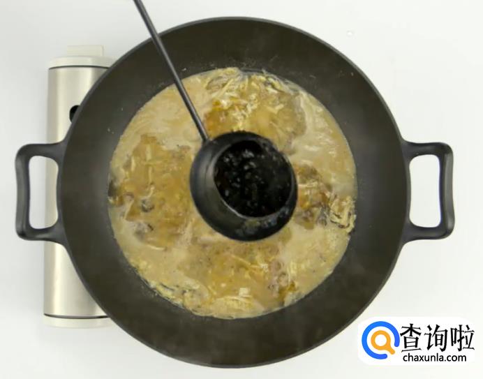 之后热锅倒入煮鸡胸肉的汤。