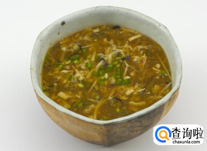 猪肉丝 100克、鸡胸肉 100克、木耳 40克、香菇 40克、笋 40克、嫩豆腐、鸡蛋 2个、香醋 30毫升、鸡高汤 700毫升、白胡椒粉 2克、香油、老抽、盐、生粉、葱花