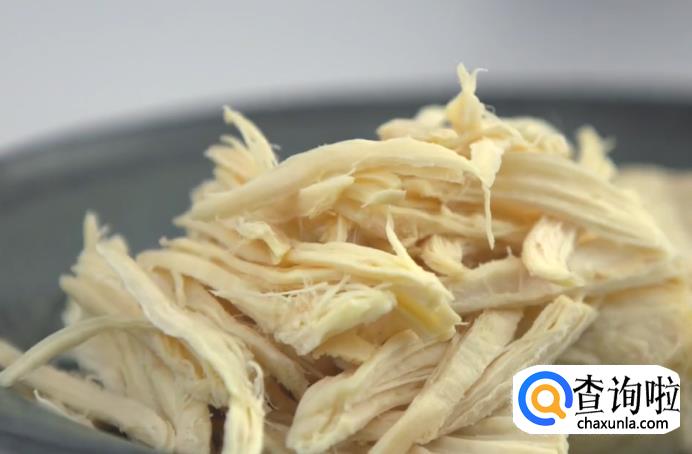 首先把焯熟的鸡胸肉撕成细丝