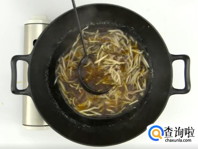 2分钟之后,放入鸡丝。