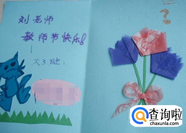 手工花朵。手工做一束花贴在贺卡上,再用纸剪一个人物形状,加上一些花草等,写上祝福语即可。