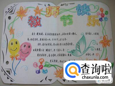 美丽边框。需要将纸画上美丽的边框,用藤蔓和花朵,还有气球装饰,中间写上教师节的祝福语等。