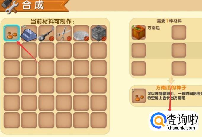 收获野生的方南瓜之后可以直接合成为方南瓜的种子。