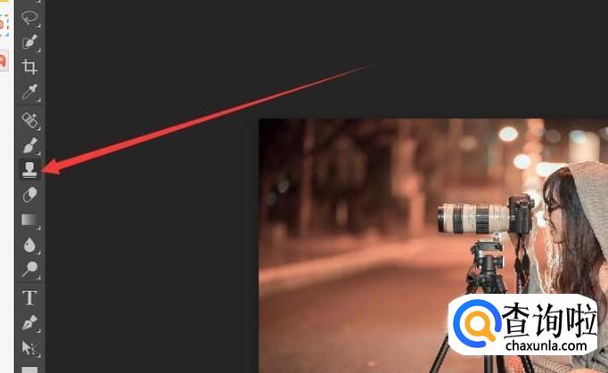 添加了图片进去之后,我们选择左边工具栏中的克隆工具,此工具可以克隆图像,能够帮助我们消除水印。