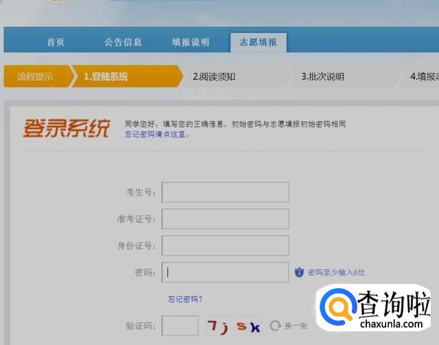 选择你要填报的批次,点击进入。然后登陆,开始填报。