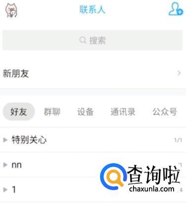 进入之后,来到联系人选项,点击有上角添加好友选项。