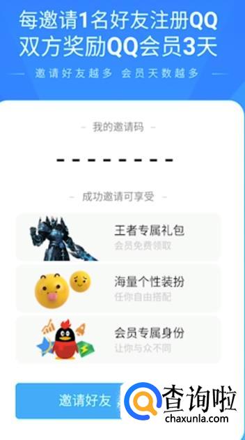 进去之后我们会看到一个邀请好友注册QQ,点击进入我们就可以看到我们自己的邀请码了。