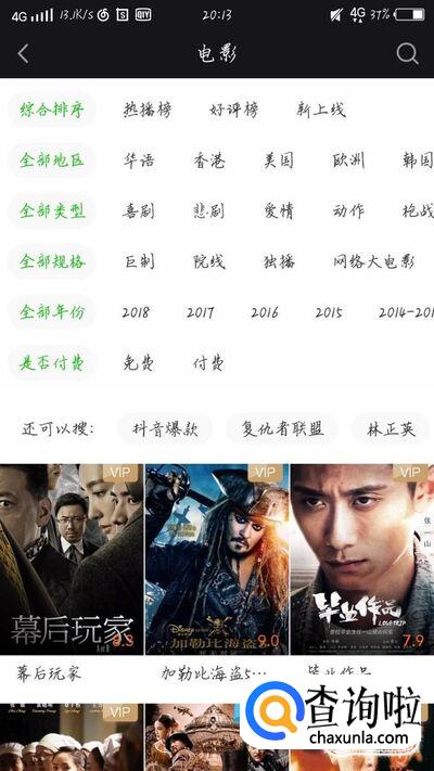 会出现一个新的界面,如图1所示。你可以在小编推荐里选择你喜欢看的电影。也可以点击搜索框旁边的筛选看。如图2所示。