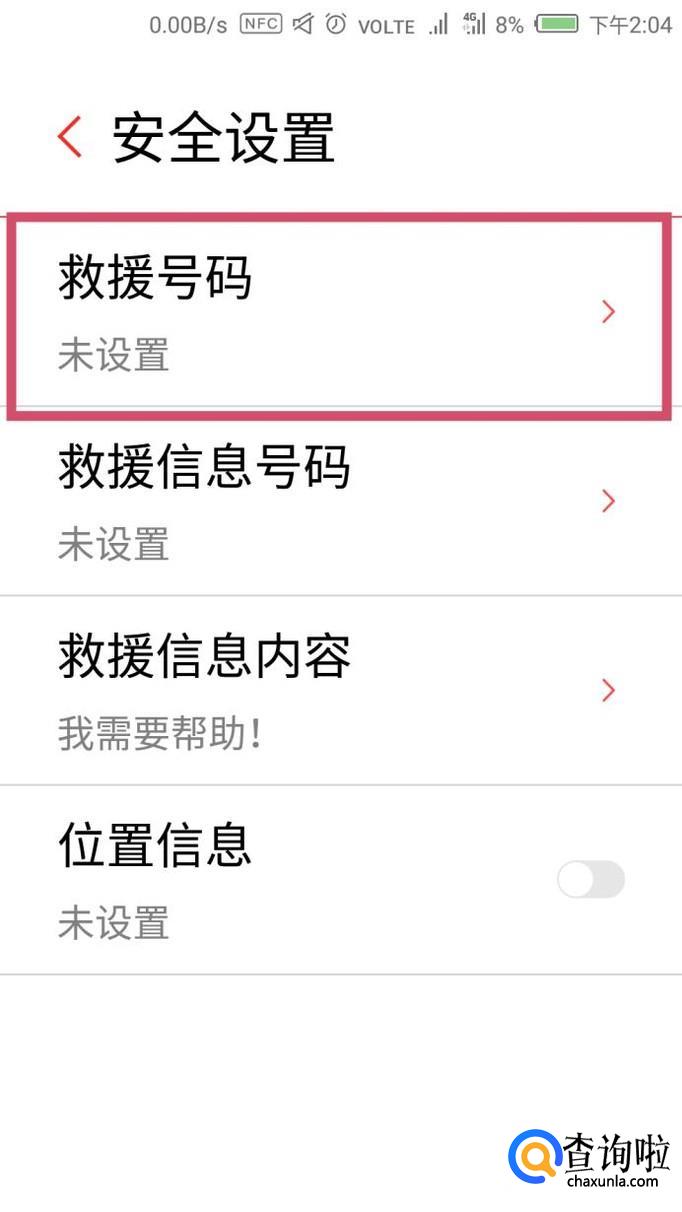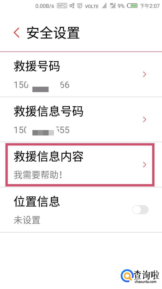 这里有【救援号码】、【救援信息号码】、【救援信息内容】和【位置信息】四项,填写确定即可,这几项并不是必填的。
