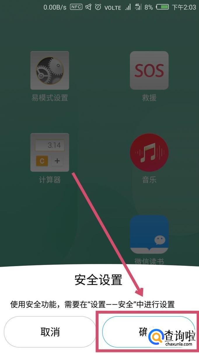 然后系统会提示我们去【易模式设置】中进行安全设置,点击确定即可。