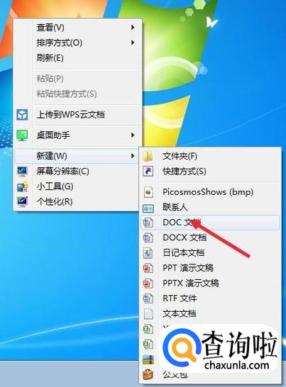 右击桌面,然后点击新建,然后点击创建一个word文档。