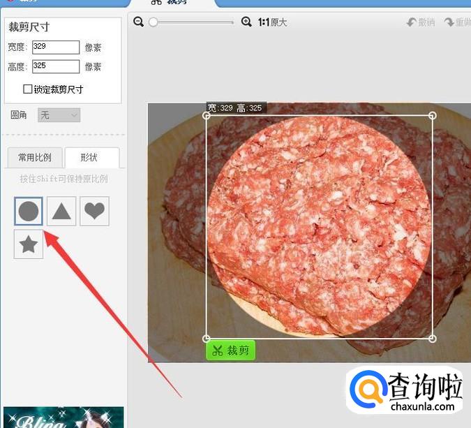 打开之后,在“形状”位置选择“圆形”,然后点击“裁剪”即可将其裁剪成圆形。