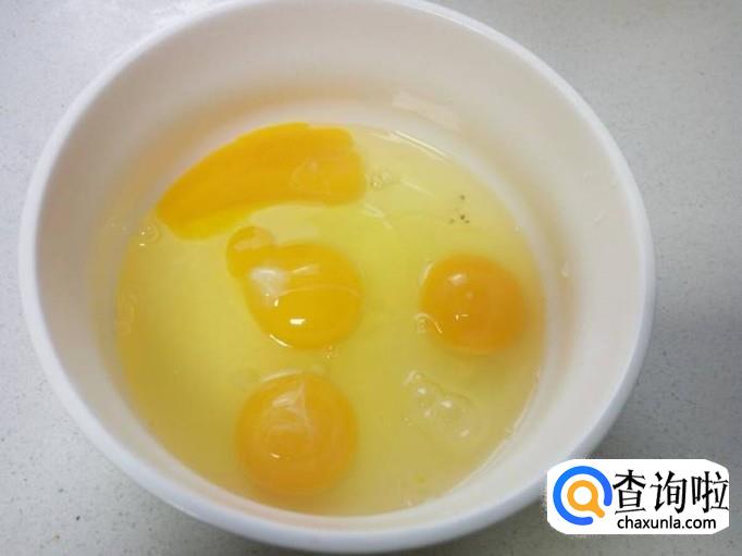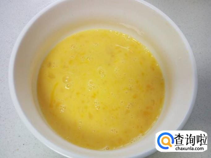 鸡蛋打入碗中,搅拌成鸡蛋液。