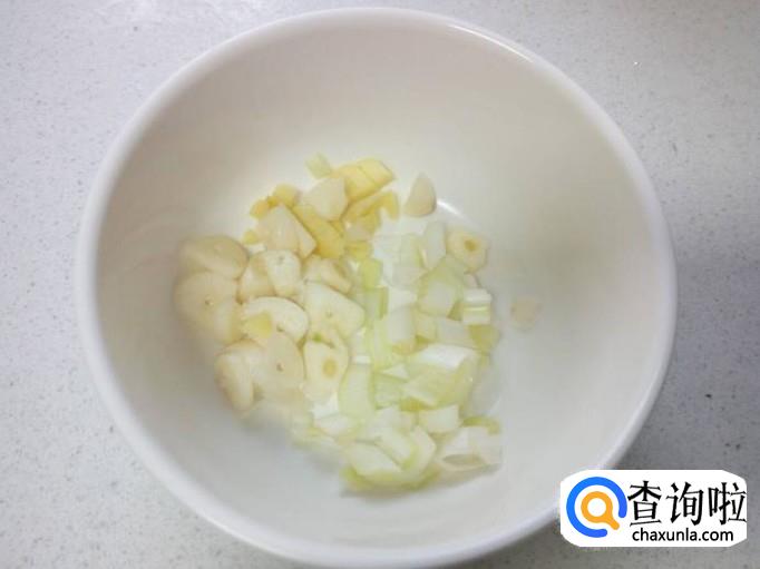 切好葱,姜,蒜,备用。