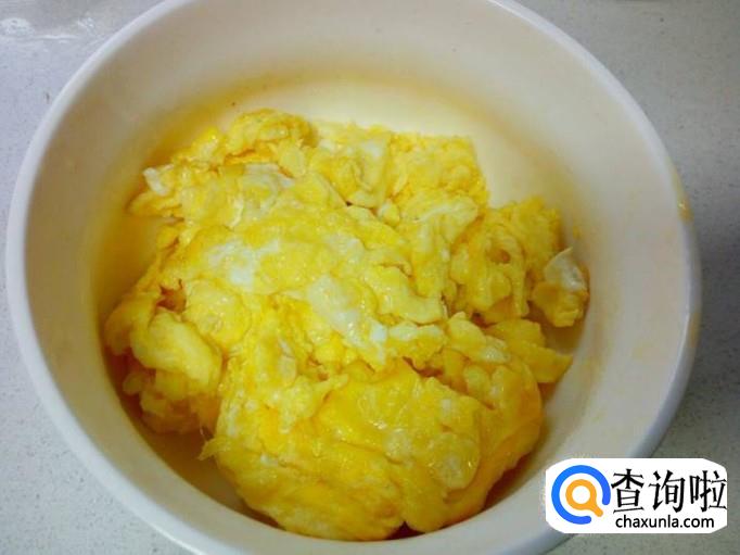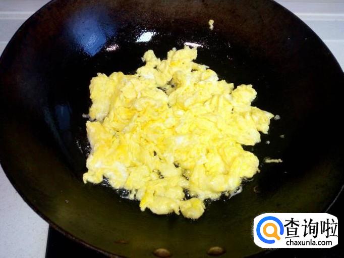 用锅先把鸡蛋炒出来,炒至七分熟即可,盛出备用。
