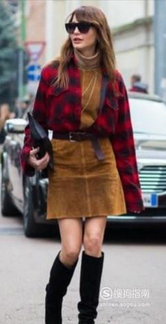 大地色裙子:红格子衬衫的复古风,配上同样复古的大地色系,如下图的土黄色裙子,真是一点违和感都没有,配裙子时记得要用腰带做出腰身比例。